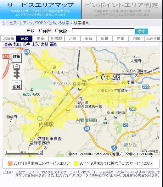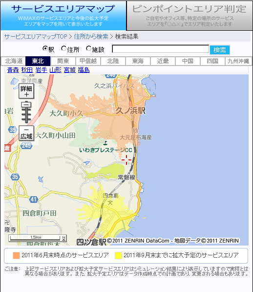 オイラが住んでる内郷の住宅地はギリギリ?湯本の駅前はもちろん圏内。