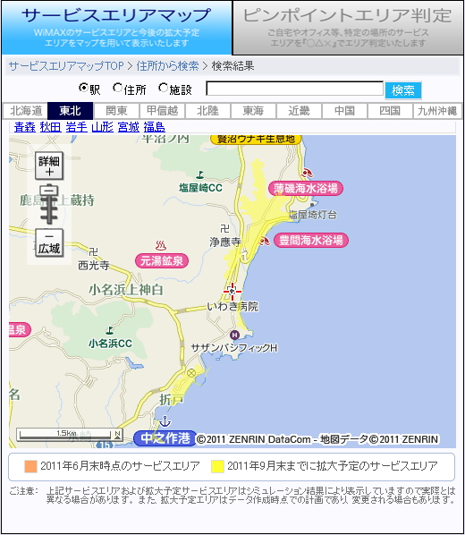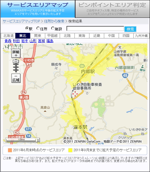 すでにサービスインした大都市圏の独居層では自宅の固定回線をWiMAXに置き換えるほど(一人暮らしだと外出中はネット繋がないので)のサービスが遂に今年9月末から福島県いわき市でもサービス開始するそうです。